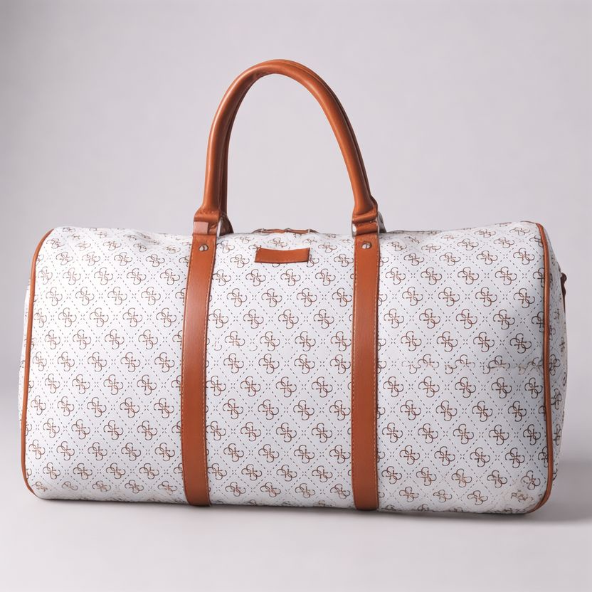 شنطة سفر كبيرة بتصميم أنيق مستوحى من تصميم Guess، مناسبة لكل اللي بيحبوا الشكل الفاخر مع الاستخدام العملي. الشنطة بتصميم اسطواني يوفر مساحة داخلية واسعة تقدر تشيل فيها احتياجات السفر الخفيف أو النادي بسهولة، مع سوستة إغلاق علوية علشان تحافظ على المحتويات بشكل آمن، ومقابض علوية قوية لراحة أكبر أثناء الحمل.
