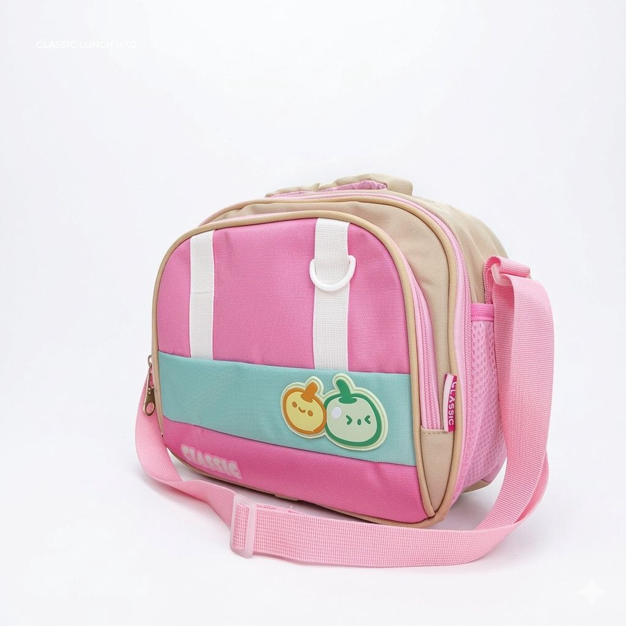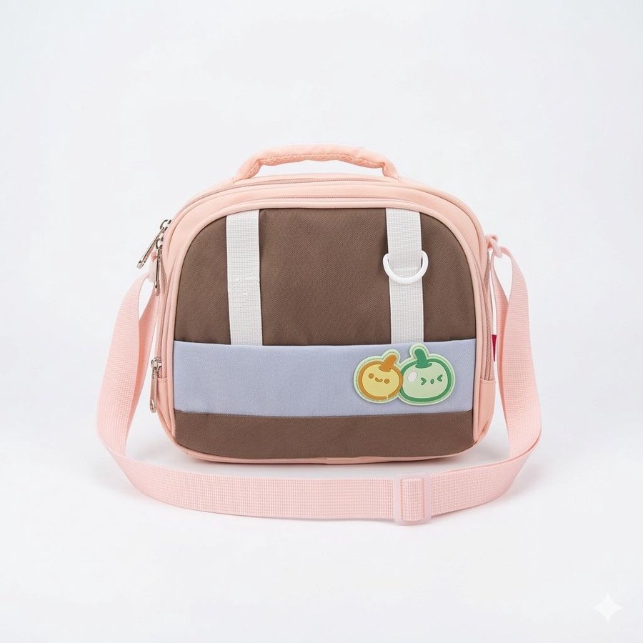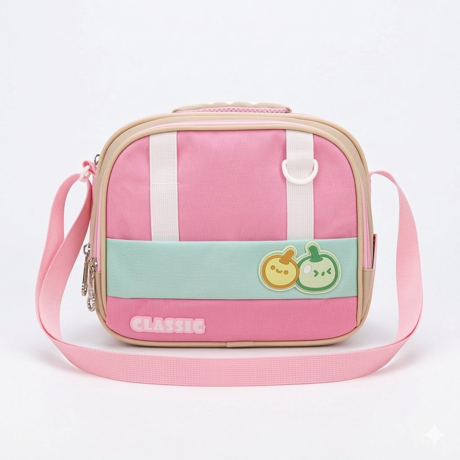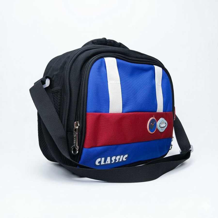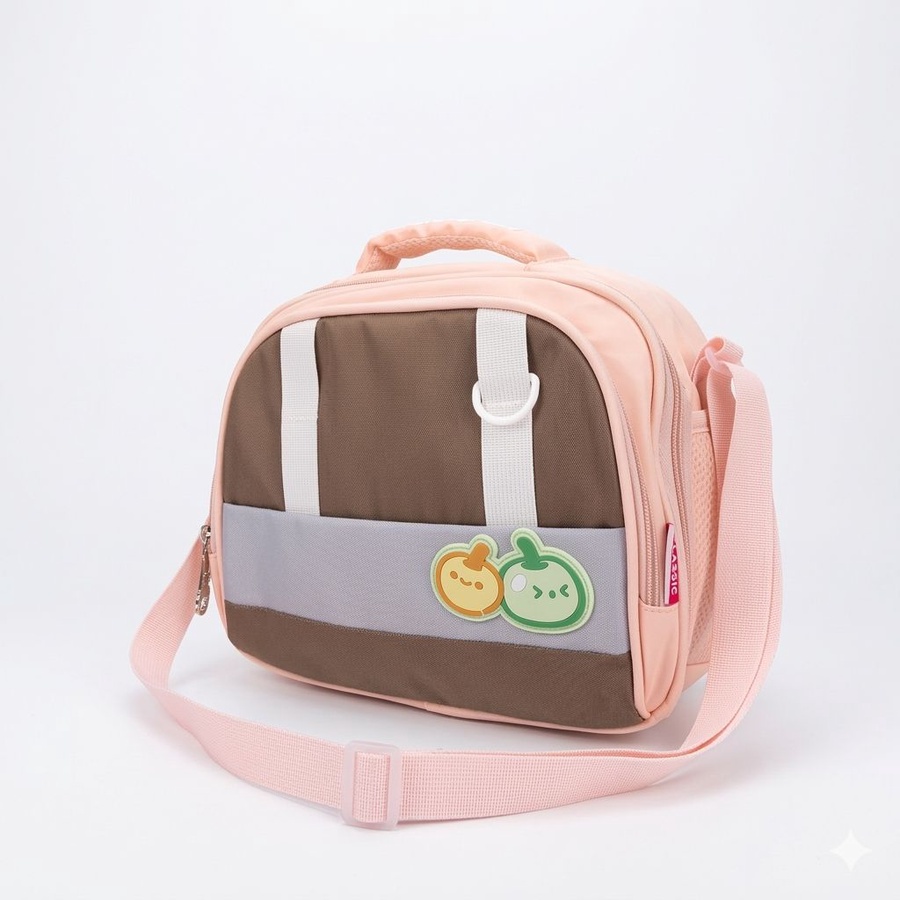 السعة والاستخدام: مساحة تكفي علبة أكل، ساندويتشات، سناك وزجاجة مياه صغيرة، مع جيب أمامي بسحاب لتنظيم المناديل أو المعقم، ومناسبة كلانش بوكس يومي للمدرسة أو الرحلات.