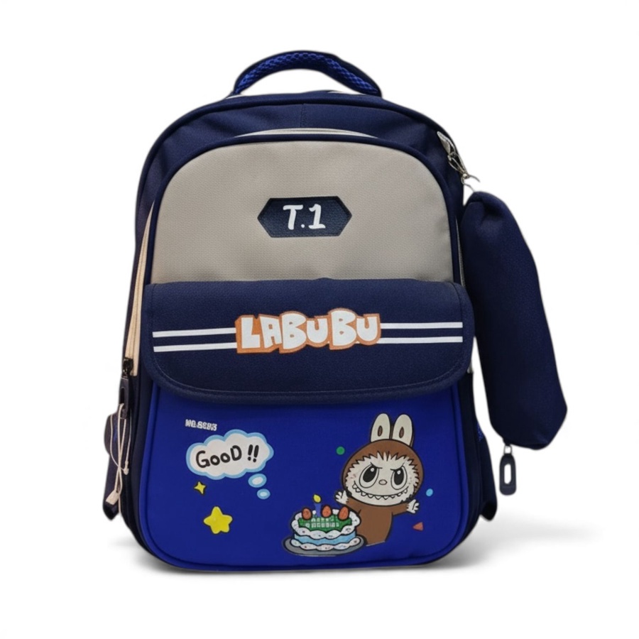 شنطة الظهر LABUBU دي معمولة مخصوص للأطفال في المرحلة الابتدائية، بتصميم مستطيل منظم وطباعة كارتونية ظريفة في الجيب الأمامي تخليها محببة جدًا للأولاد والبنات. الجيب الأمامي الكبير بغطاء يسهل على الطفل يفتح ويقفل، مع جيب رئيسي واسع للكتب والكشاكيل، وجيوب جانبية لزجاجة المياه بالإضافة لمقلمة جانبية بنفس لون الشنطة للأقلام والأدوات.