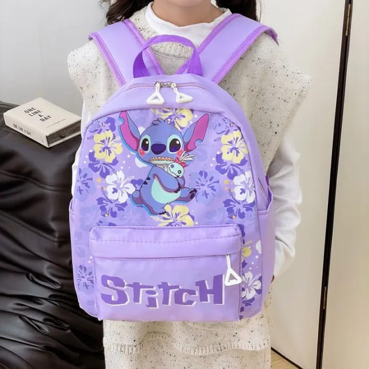 الشنطة دي معمولة مخصوص عشان تخلي أي طفل مبسوط وهو رايح الحضانة أو خارج يتمشى. تصميم بينك ناعم مع رسمة Stitch اللطيفة وشخصيات كيوت حوالينه، يخلي الشنطة شكلها مبهج وطفولي جدًا.